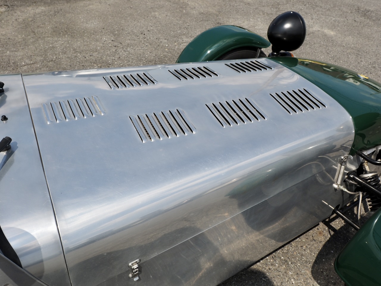 目の前に佇む、実にスーパーセブンらしい、ブリティッシュ・グリーンのノーズコーン〜フェンダーを持つ2001年式ケーターハム スーパーセヴン 1.8K スーパースポーツじっくり観ていきましょう・・・。