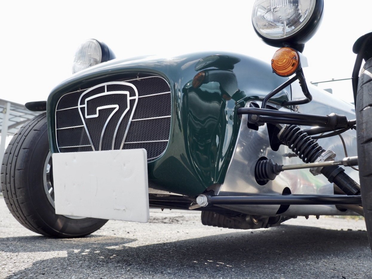 そう・・・このイメージは、目の前にあるケーターハム・スーパーセブンが、ただの吊るしの軽量スポーツではないことを誇示しているのです・・・。