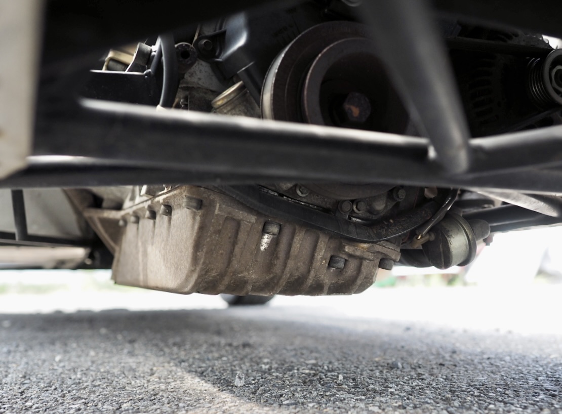 スーパースポーツ仕様のローバー1.8Kユニット〜トランスミッションともに状態は非常に良好なコンディションを保っており、エンジン下部は完全にドライ状態・・・。