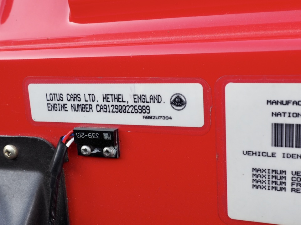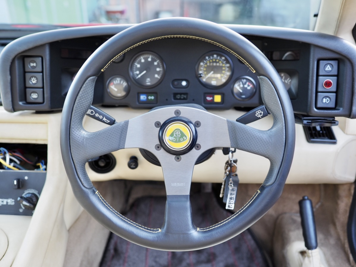 This particular car, identified by its chassis number, is a 1990 model. At the time, there was no major official Lotus importer in Japan, but records show that very small numbers were privately imported, and this example was first registered domestically in 1995.
