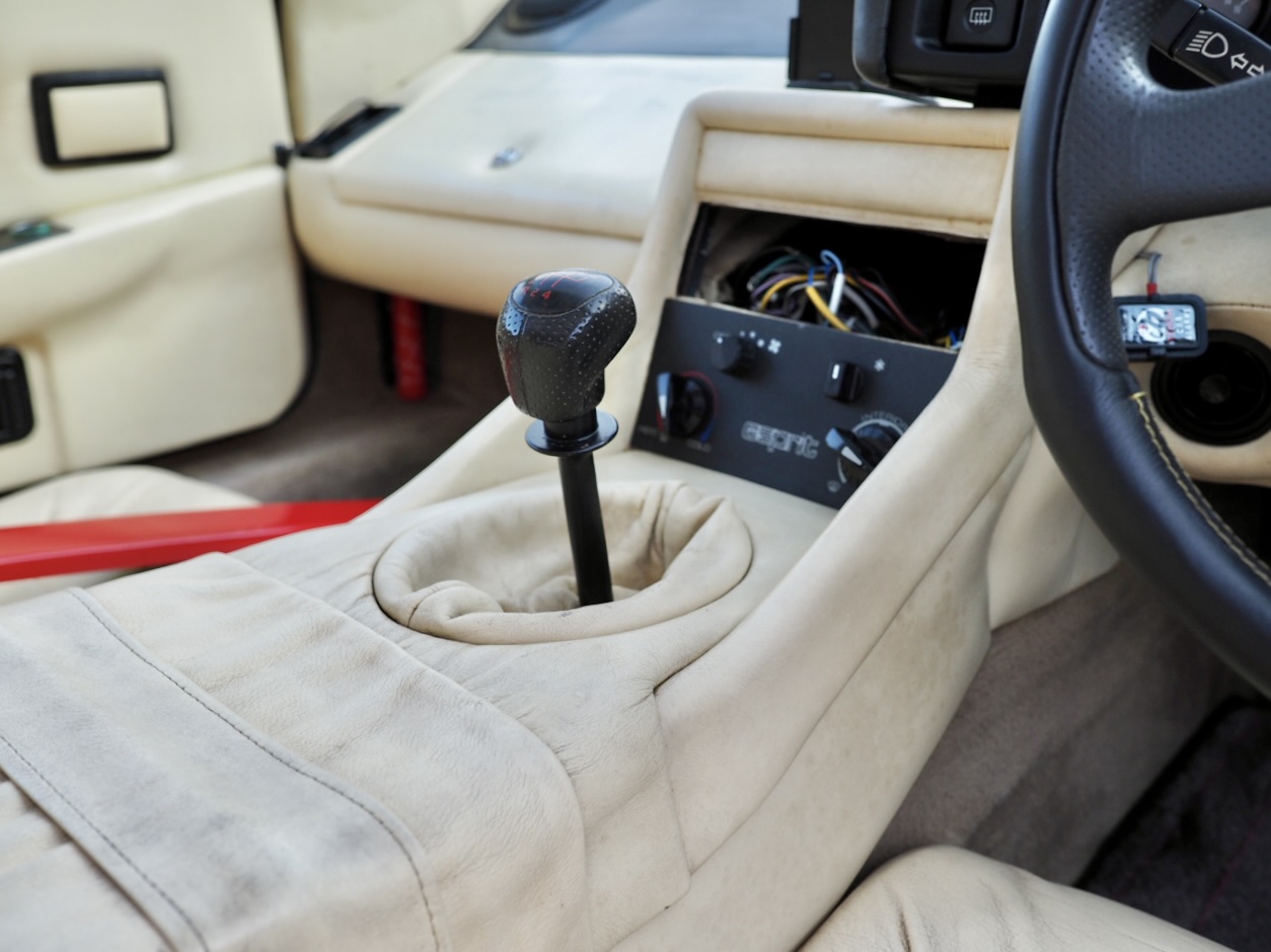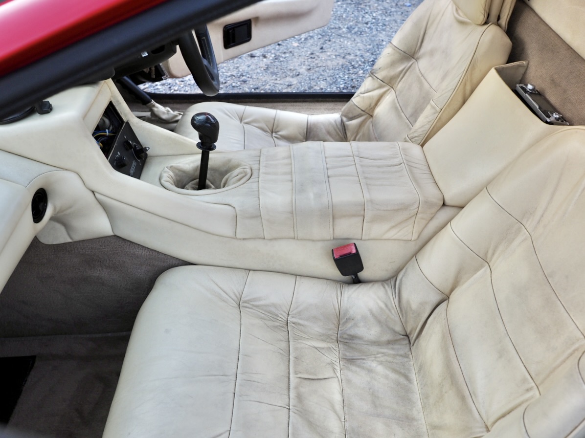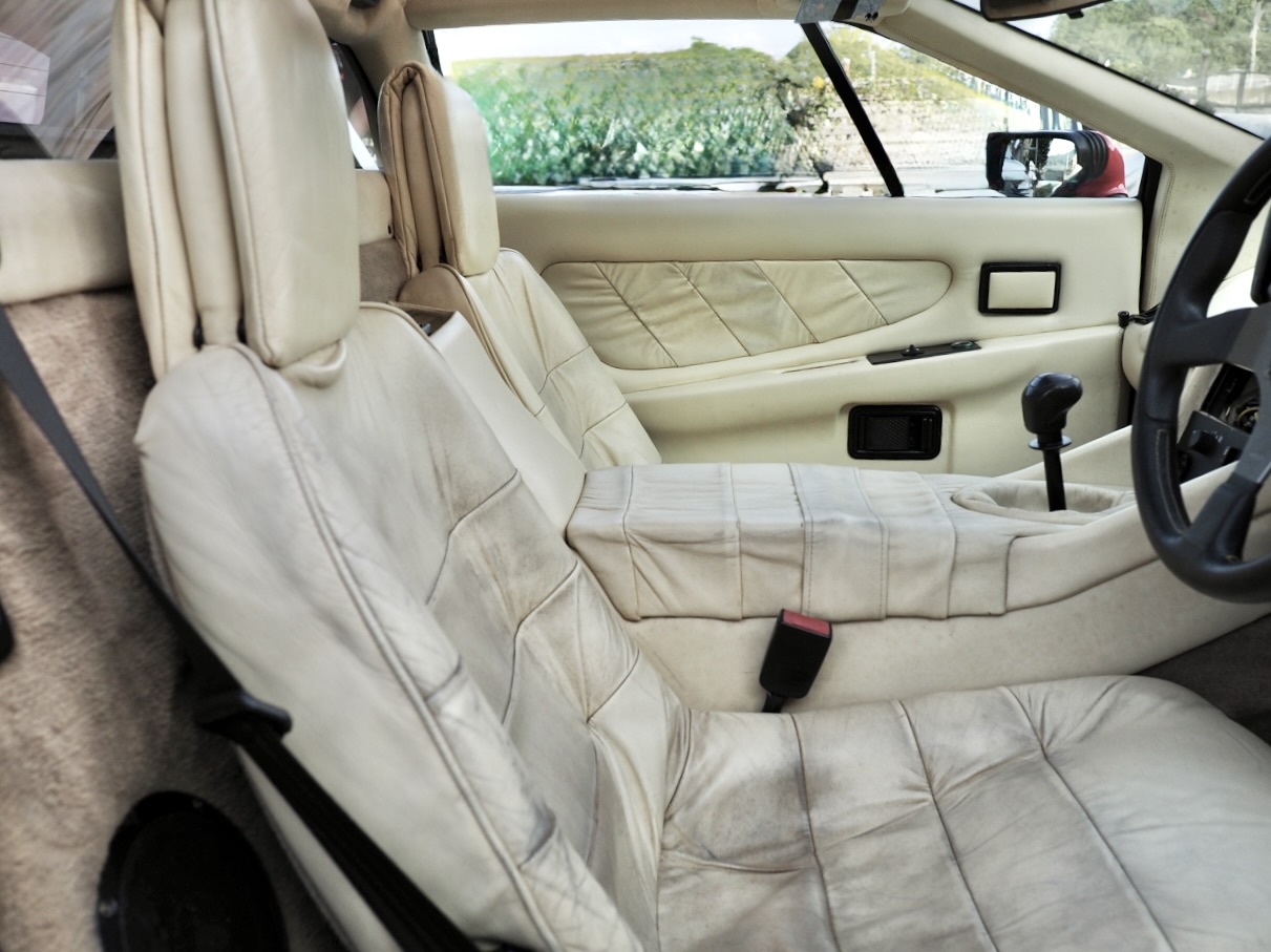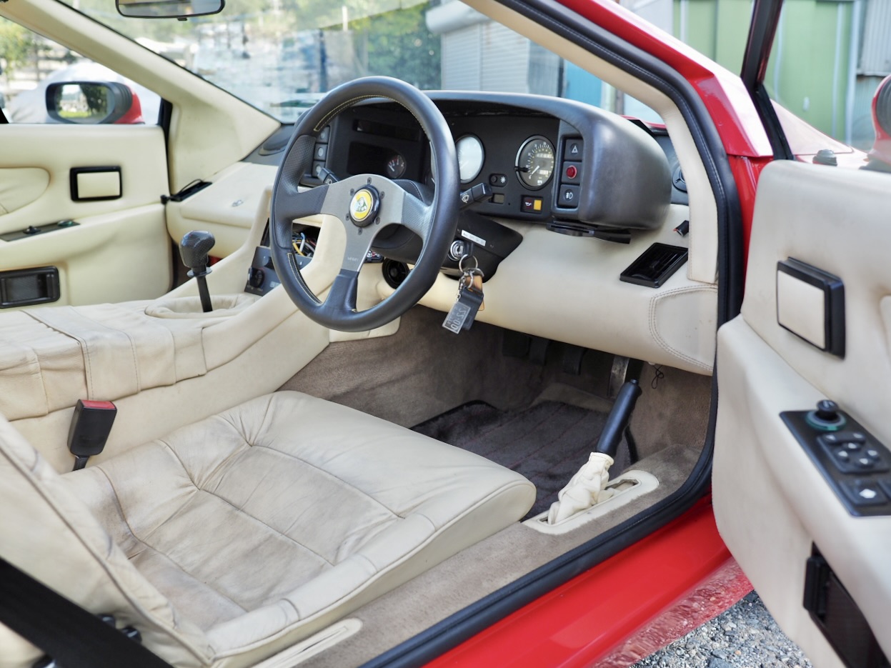Here too, time carefully cherished has been quietly etched in. The Esprit is known for interior materials that tend to deteriorate easily due to prolonged exposure to sunlight through its steeply raked, expansive windshield. Yet thanks to long-term garage storage, the structural integrity of the materials remains intact throughout this example. Even the ivory-colored seats—where aging usually shows most clearly—remain in remarkably good condition. The darkening visible in photos, particularly on the seat bases, is due to the original leather being dyed with leather pigments at the factory; re-dyeing would readily restore their original brilliance.