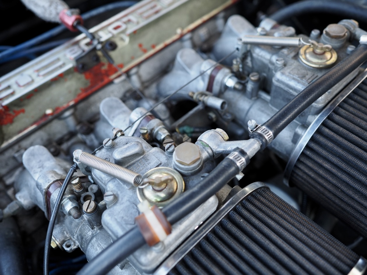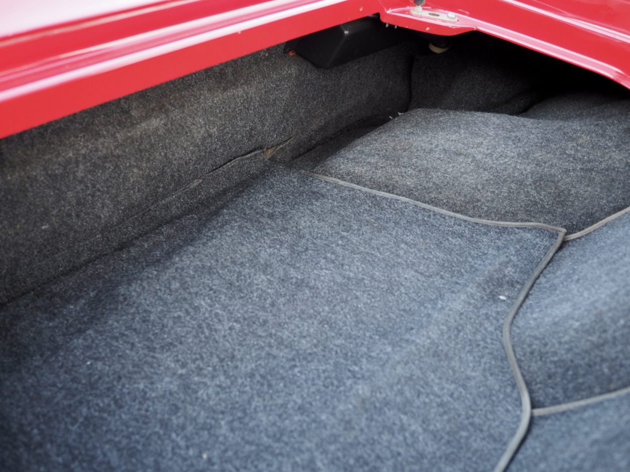 Opening the large rear engine lid and removing the rare original engine cover reveals a truly breathtaking view. The engine bay—visible even from behind the driver—is unmistakably exotic, inspiring dreams of driving with the cover removed and listening directly to the dynamic intake roar of the carburetors.