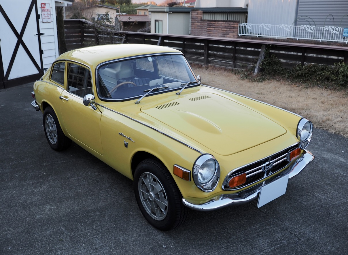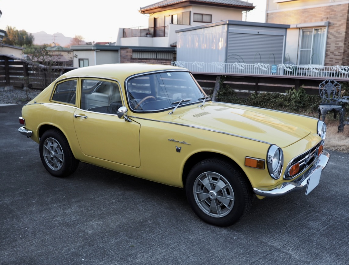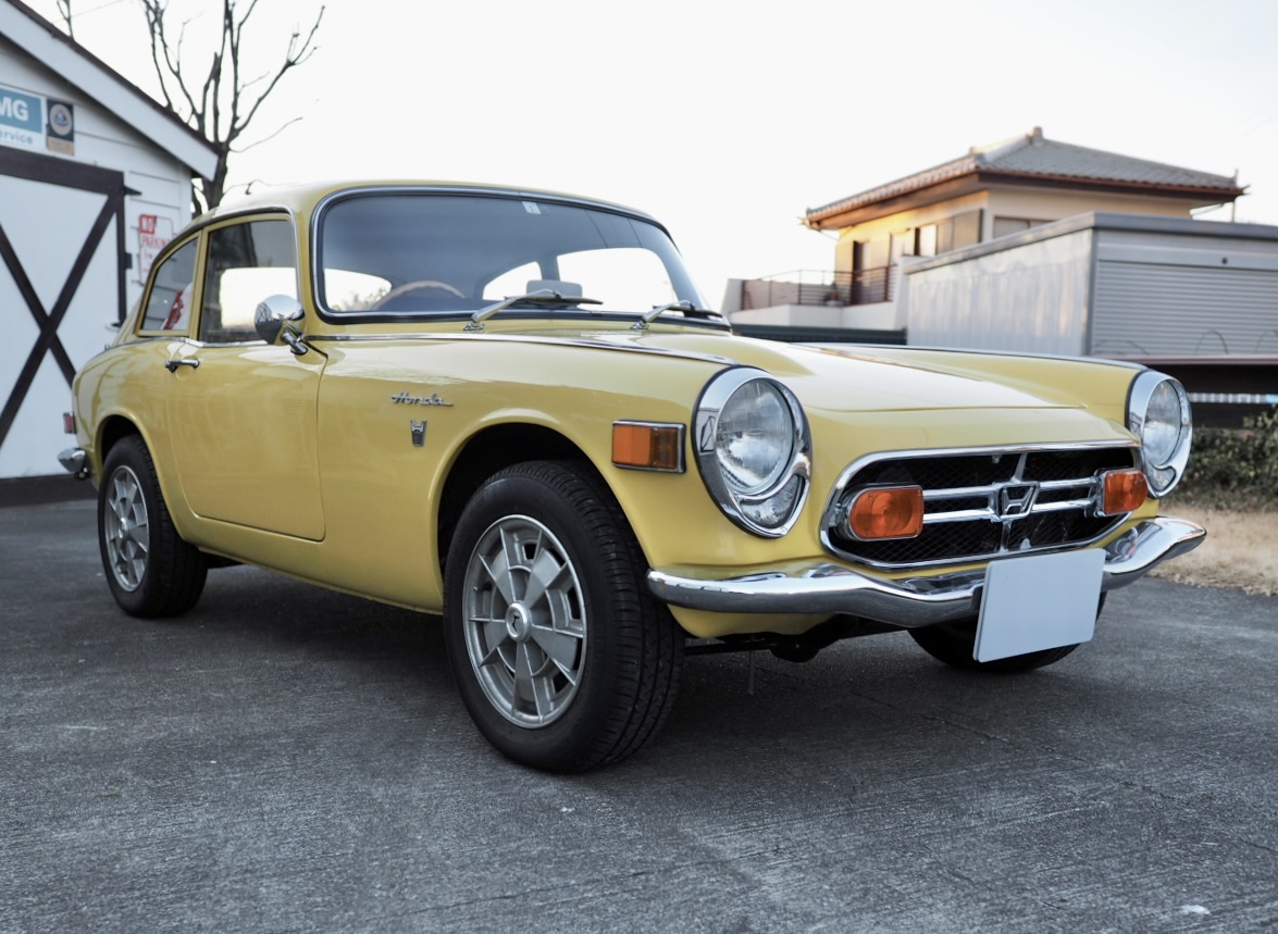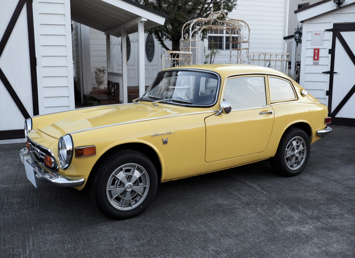 Standing before me, this 1970 Honda S800 Coupe wears its original Honda Yellow in strikingly vivid condition. Having undergone a full body restoration several years ago, followed more recently by further refinement and a complete mechanical overhaul—including the engine—by a well-known specialist shop, the car radiates an exceptionally fresh aura, vivid and alive right before my eyes.