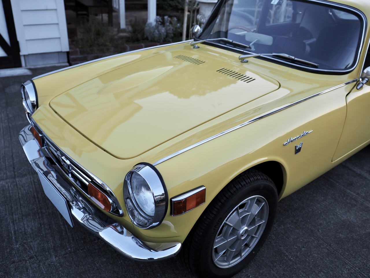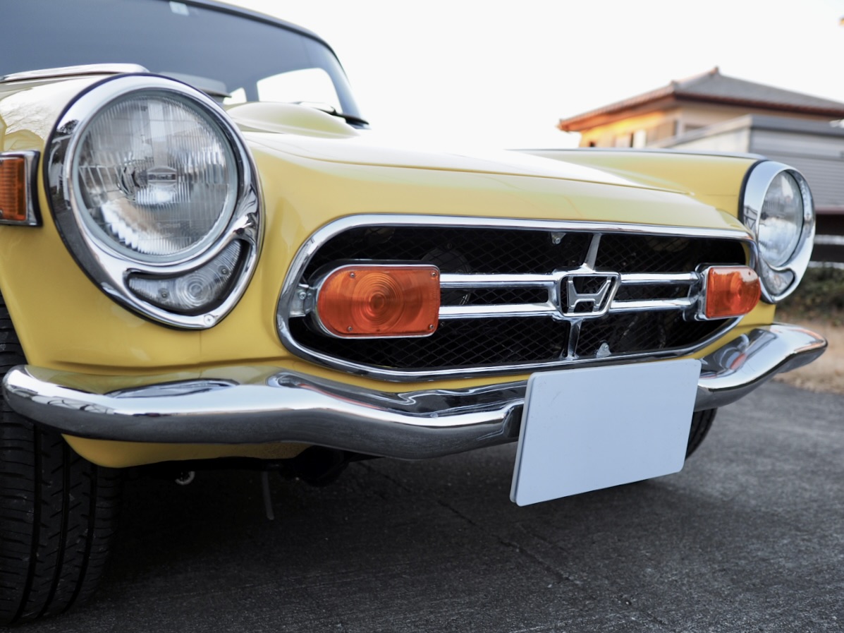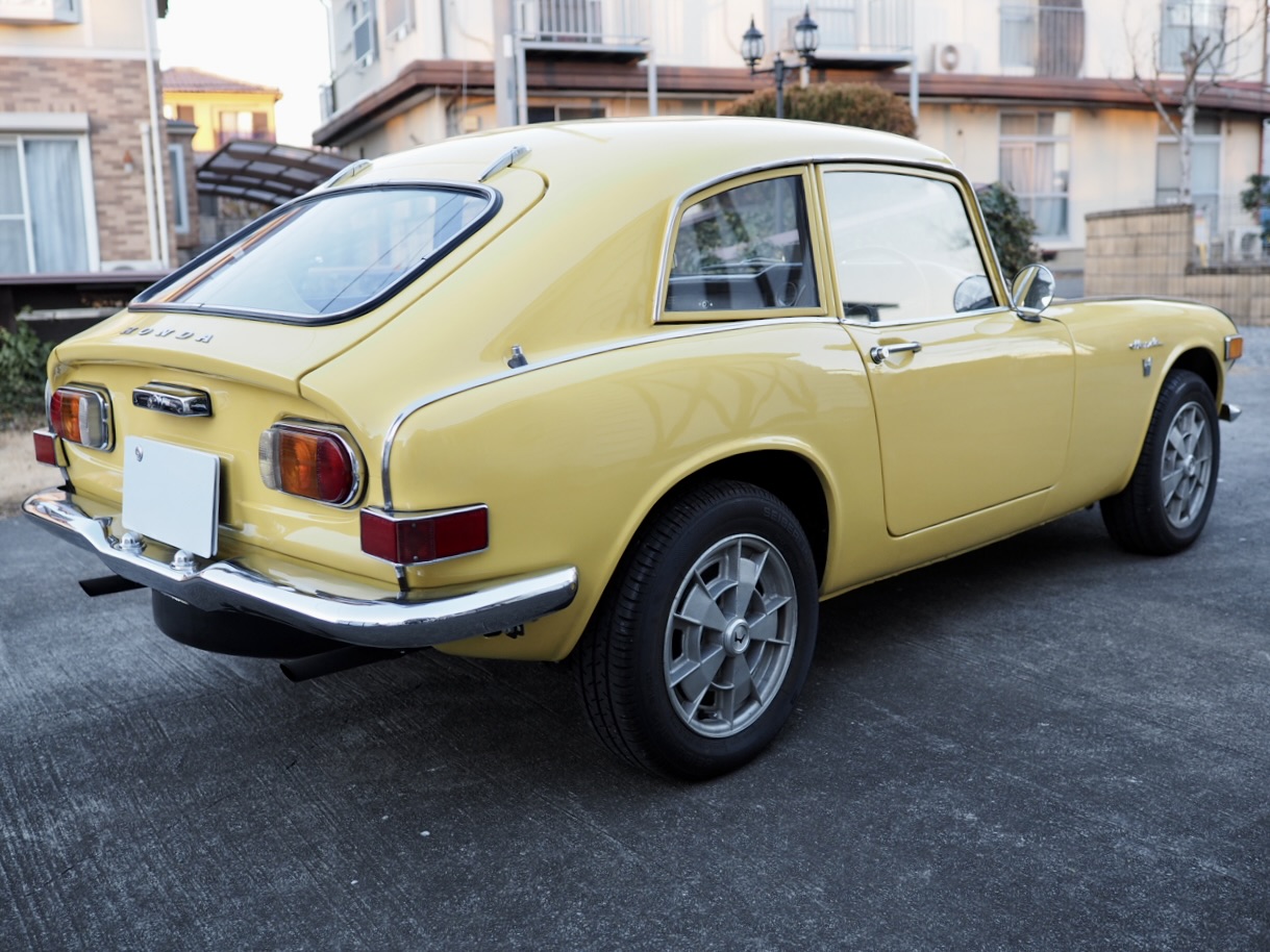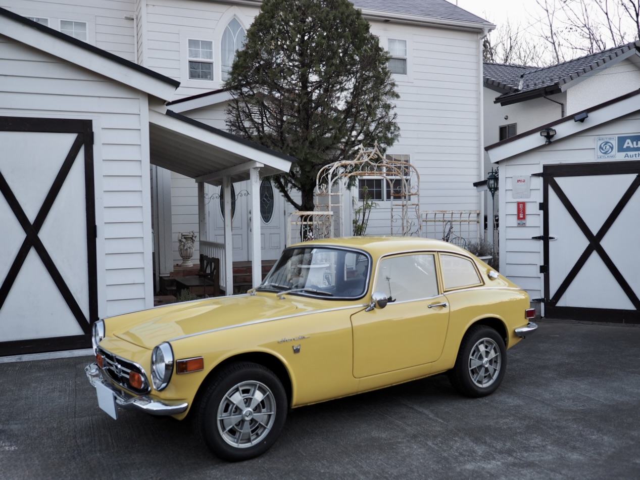Standing before me, this 1970 Honda S800 Coupe wears its original Honda Yellow in strikingly vivid condition. Having undergone a full body restoration several years ago, followed more recently by further refinement and a complete mechanical overhaul—including the engine—by a well-known specialist shop, the car radiates an exceptionally fresh aura, vivid and alive right before my eyes.