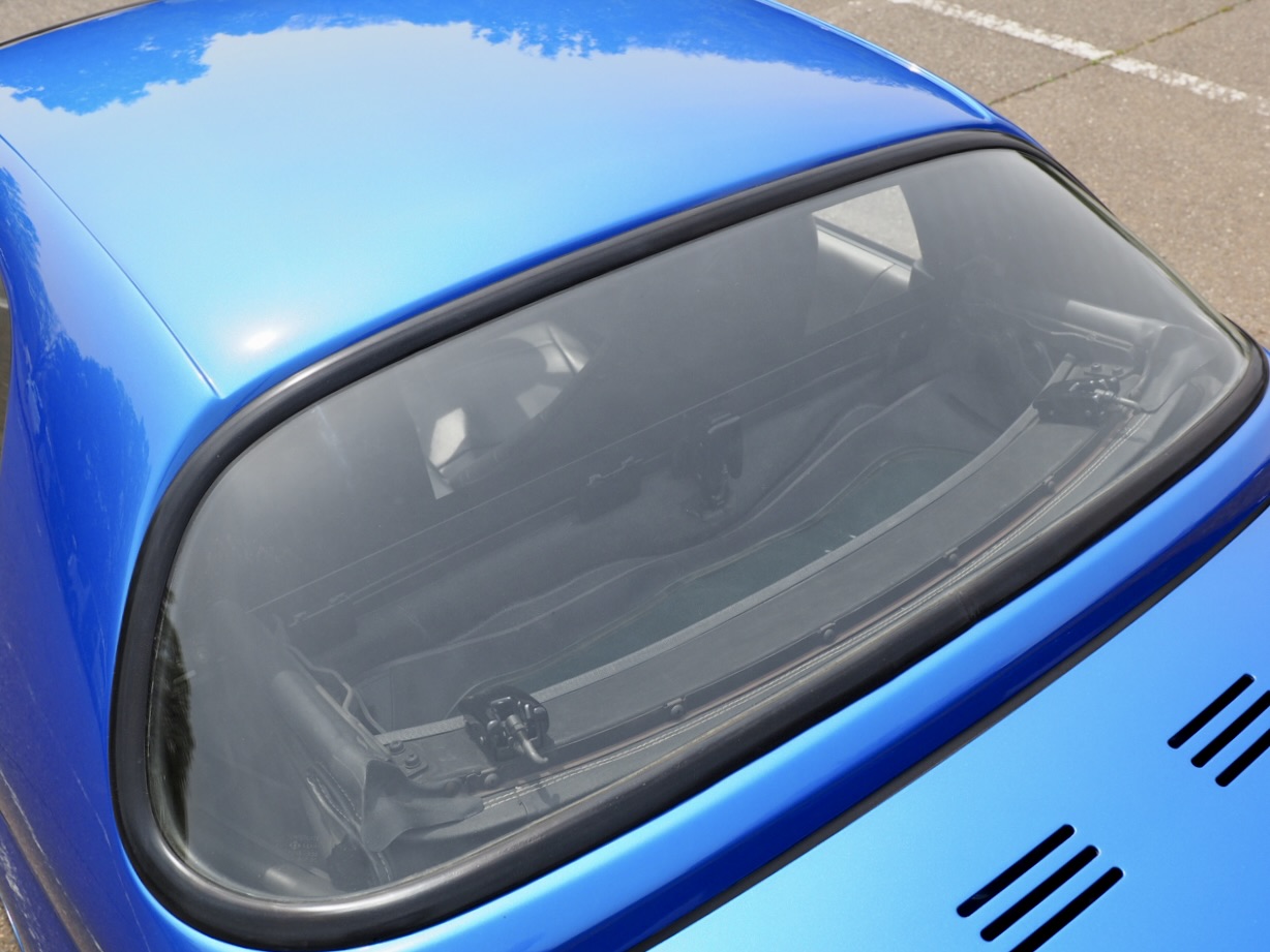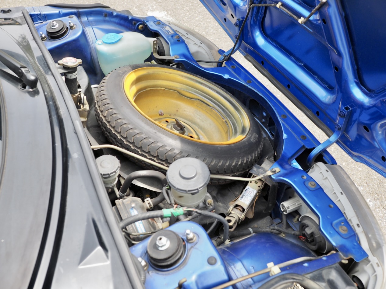 Finished in a freshly repainted blue exterior thanks to full indoor garage storage, paired with white wheels, this so-called “Version C” example is exceptionally clean. While respecting the virtues of originality, it has been treated to tasteful, mature modifications, making it a car that left a very strong positive impression.