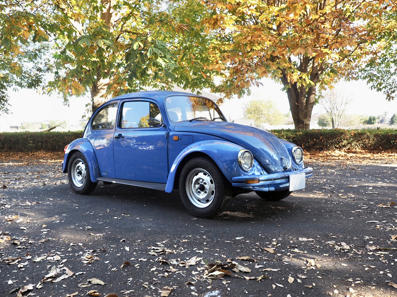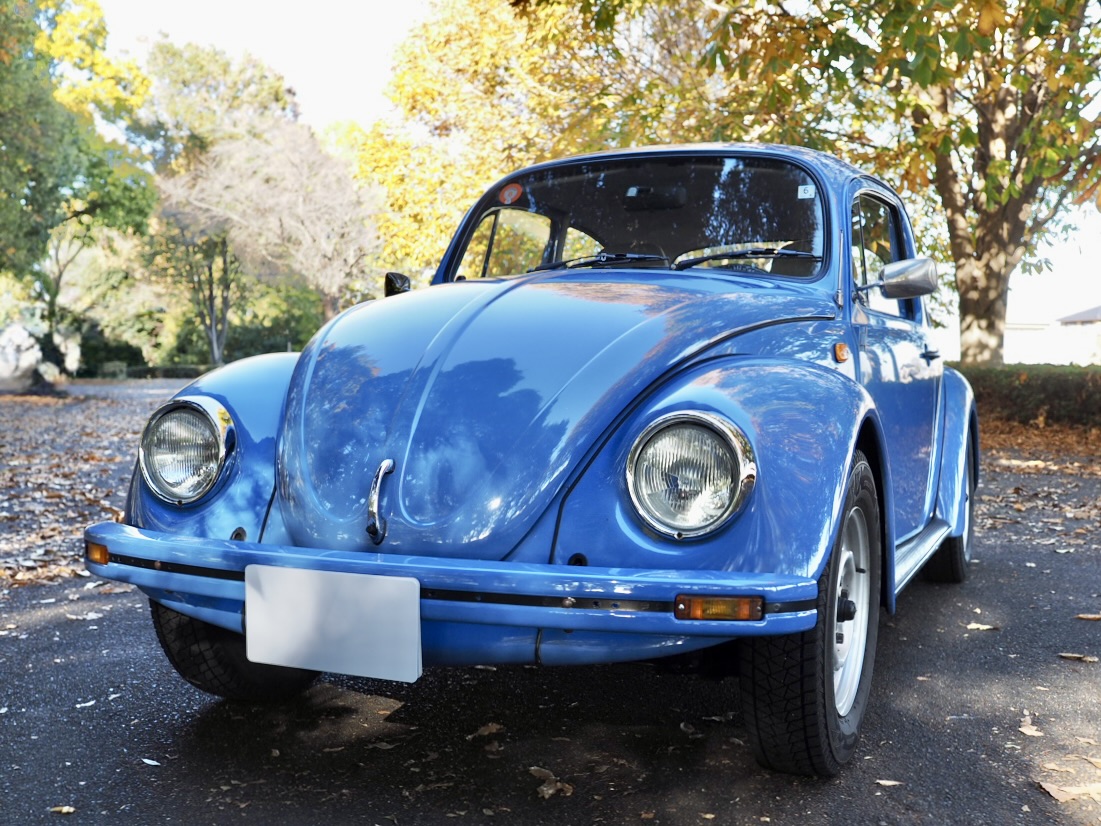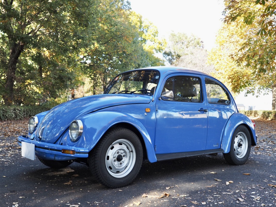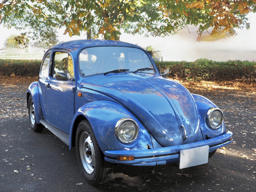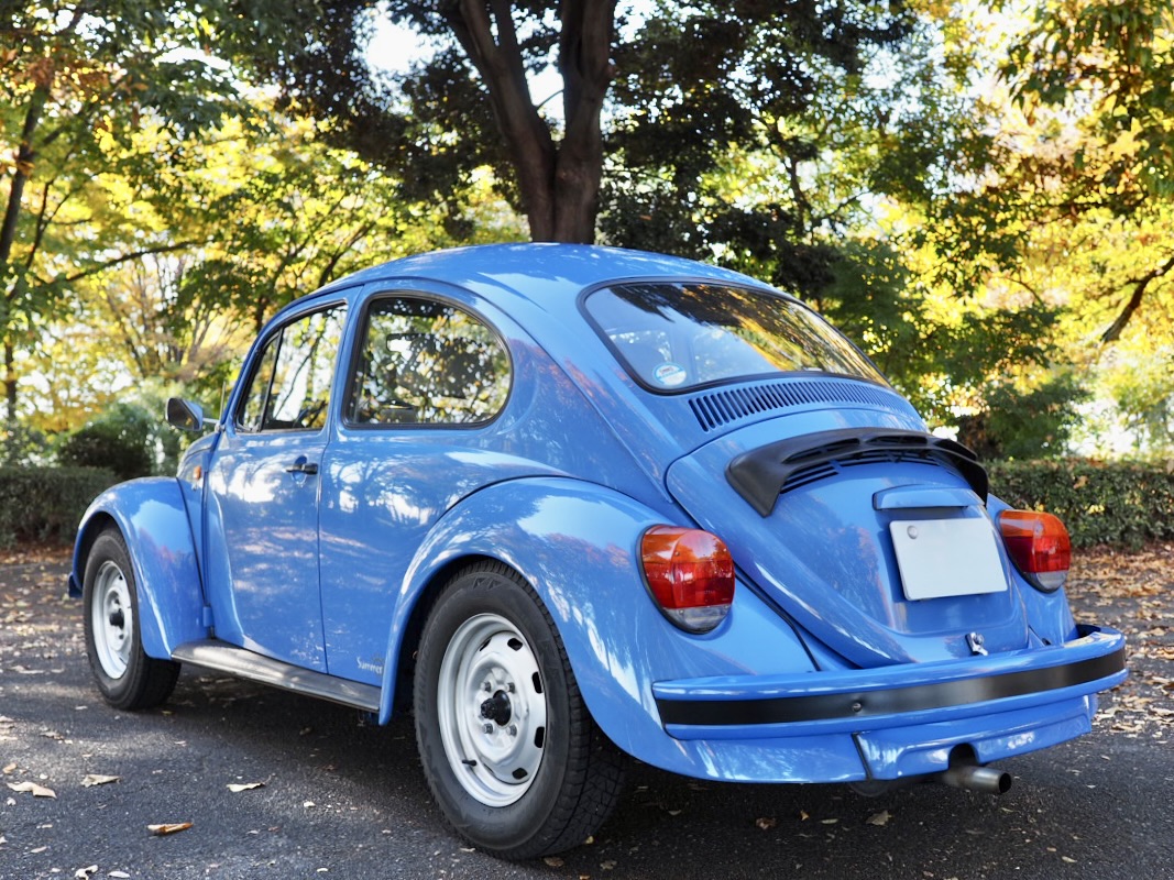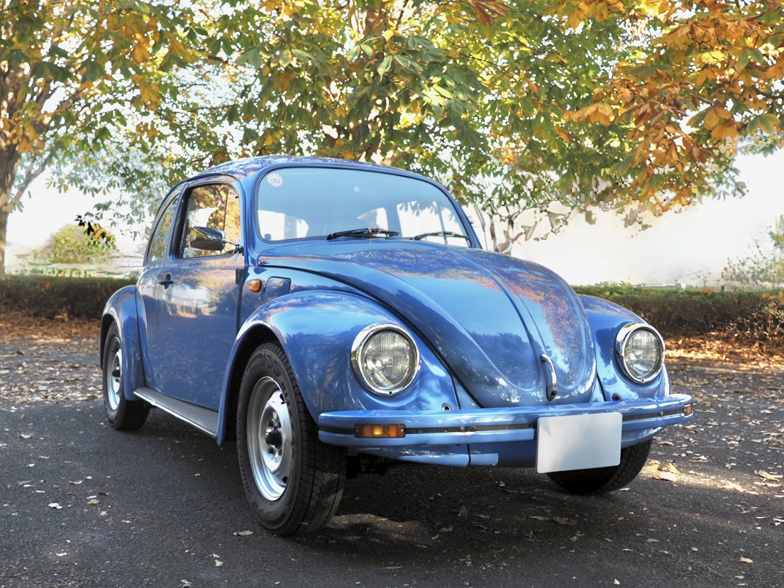 Across a carpet dyed in autumn hues by fallen ginkgo leaves, a Beetle painted in the special solid blue of the then “dealer-exclusive Summer specification” glides by, filling the air with the smooth, evenly tuned sound of its air-cooled flat-four engine…