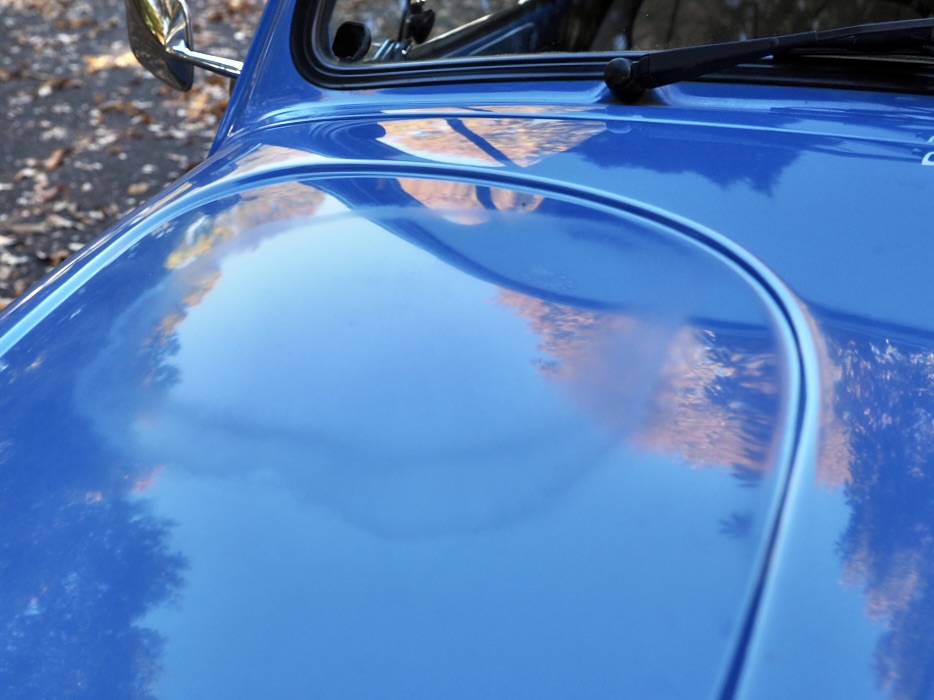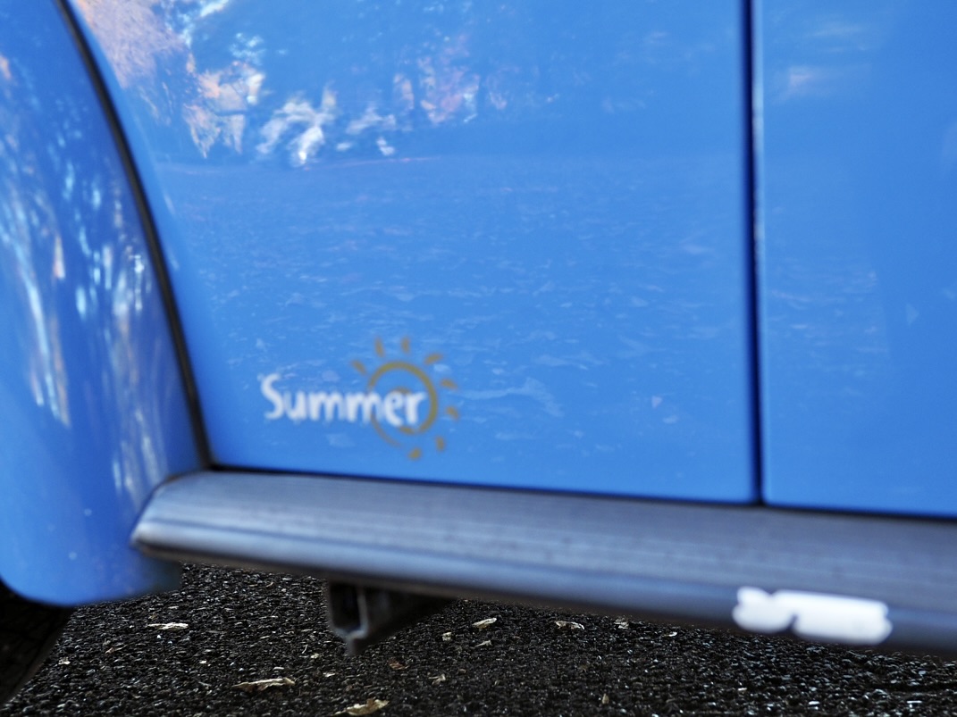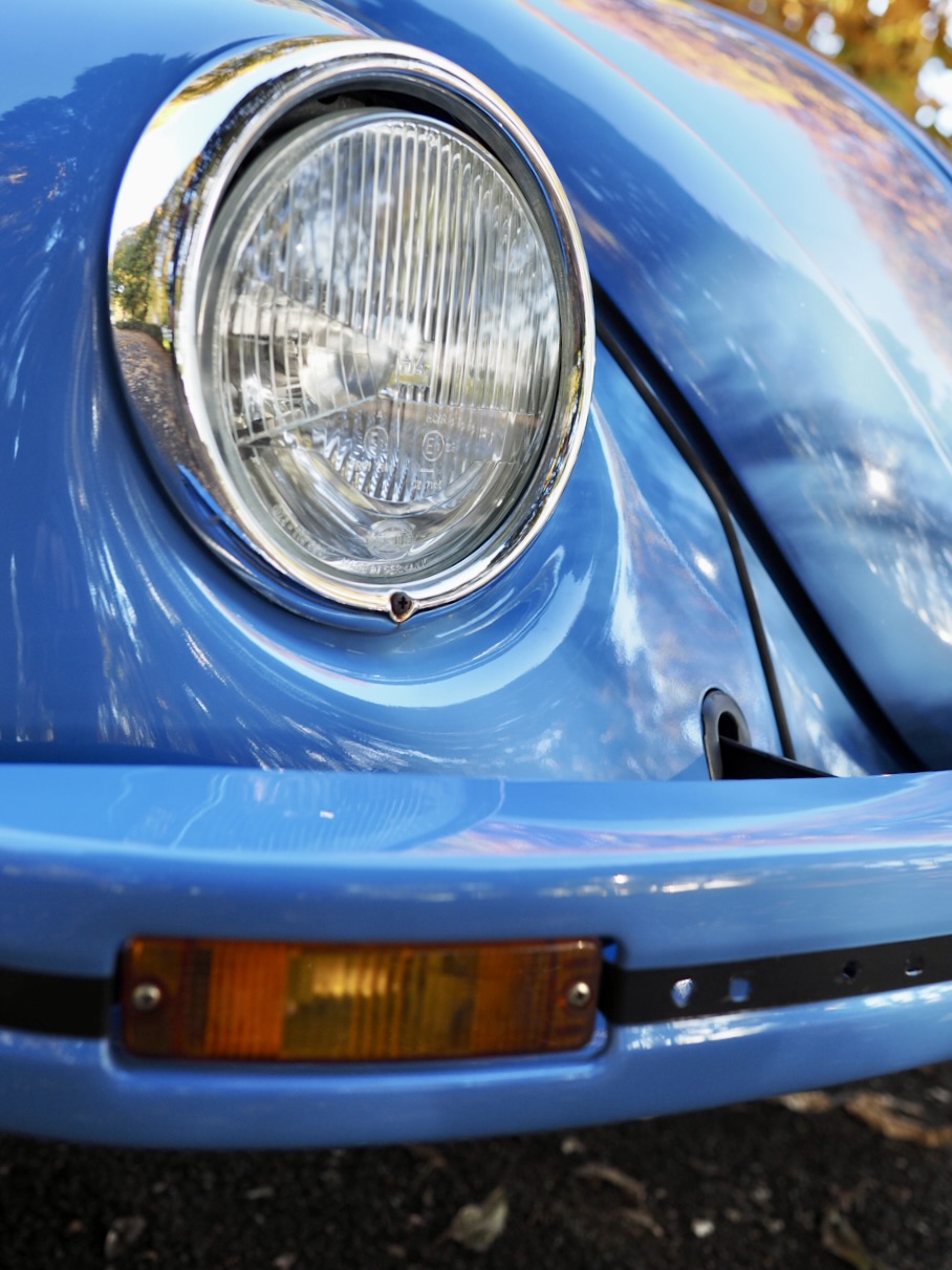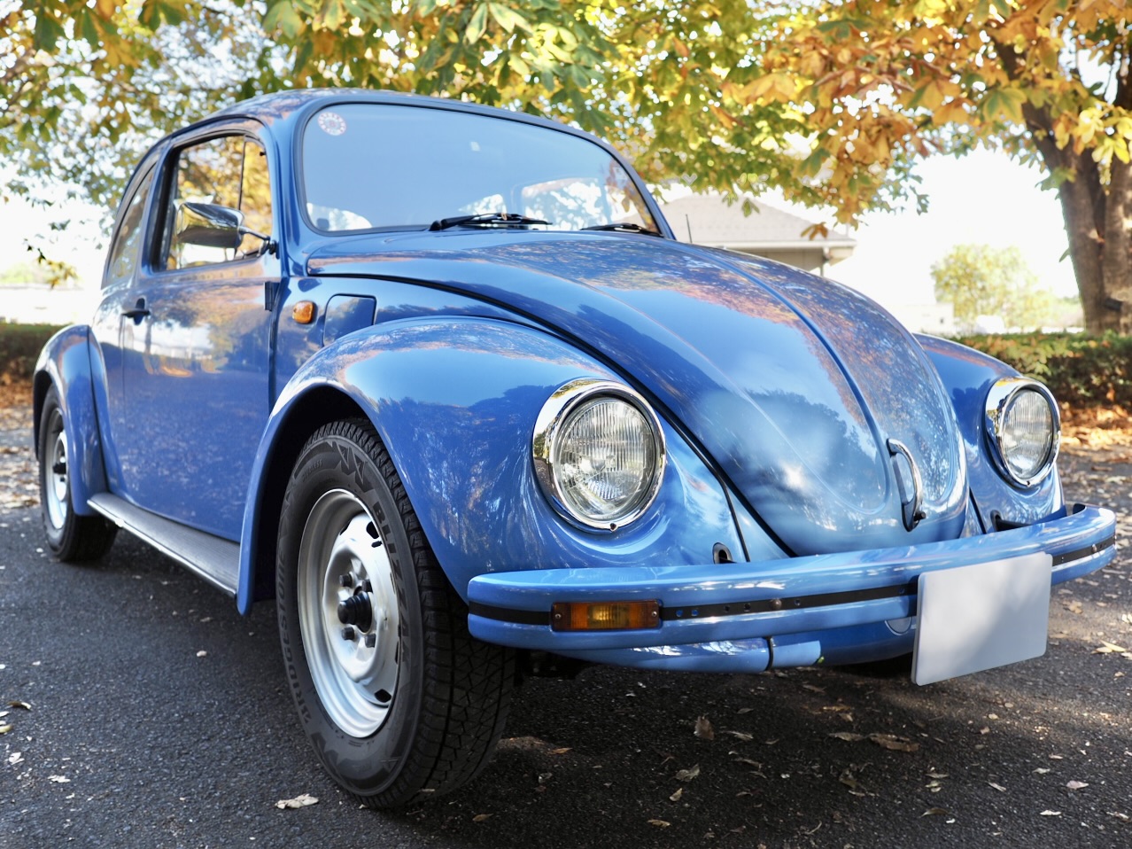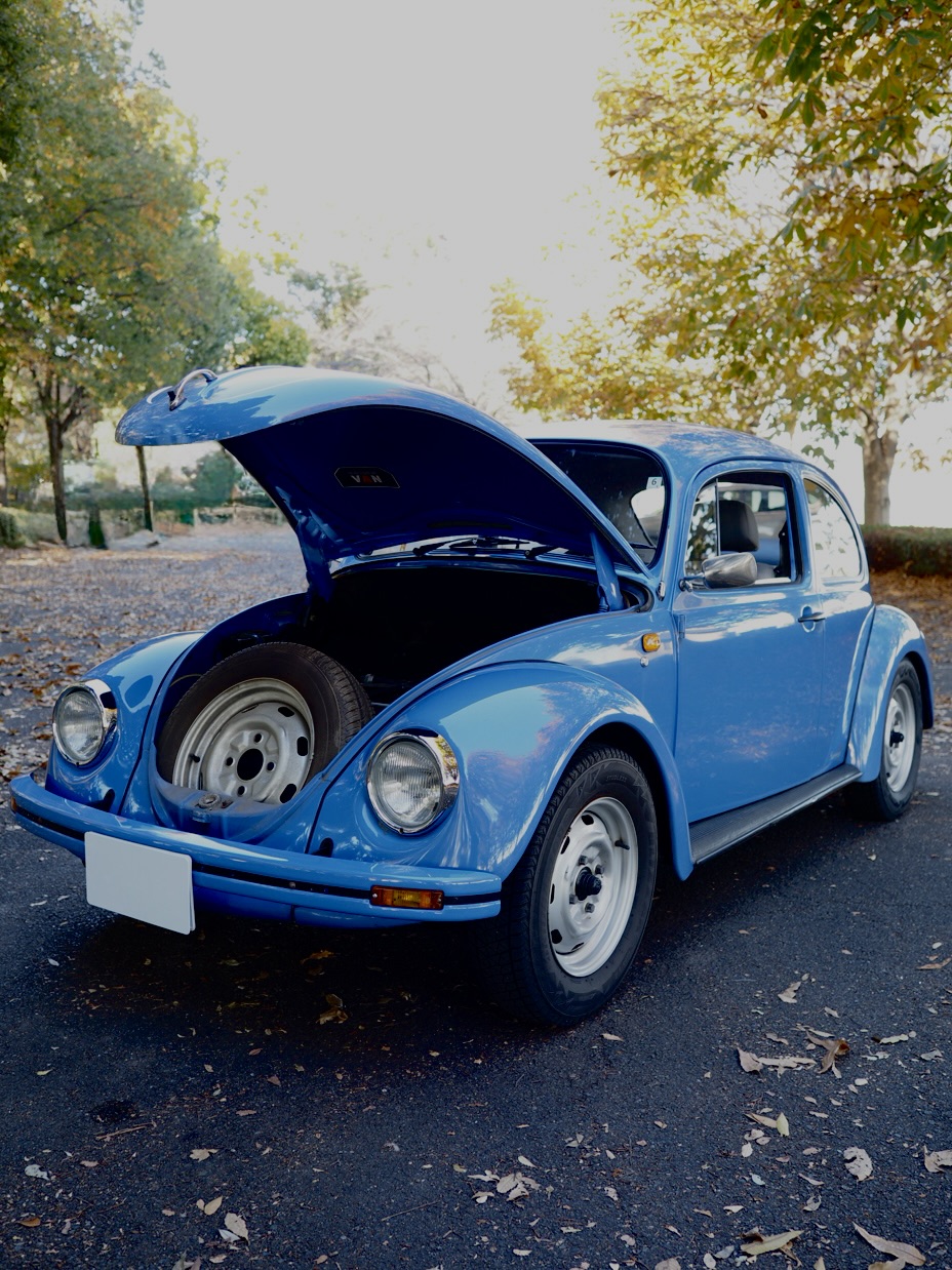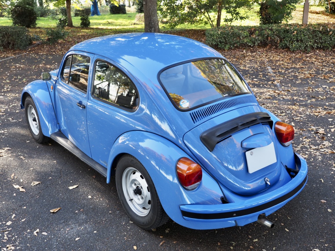Across a carpet dyed in autumn hues by fallen ginkgo leaves, a Beetle painted in the special solid blue of the then “dealer-exclusive Summer specification” glides by, filling the air with the smooth, evenly tuned sound of its air-cooled flat-four engine…