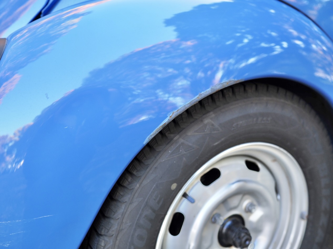 There is also a small area of paint damage on the right rear fender from a minor scrape.
