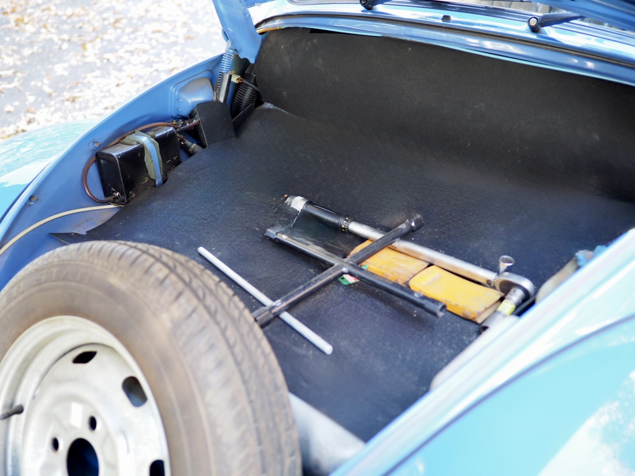 Underfoot are the original steel wheels with factory hubcaps—another element that preserves the car’s “as-it-should-be” form.