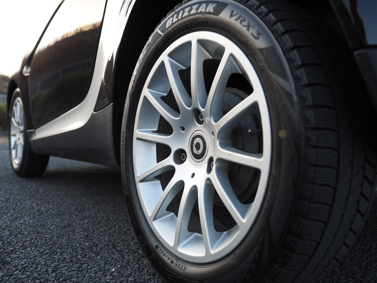 オリジナル451型スマート・フォーツー パッション純正のアルミホイールのリムには目立つガリ傷はなく非常に綺麗な印象・・・。