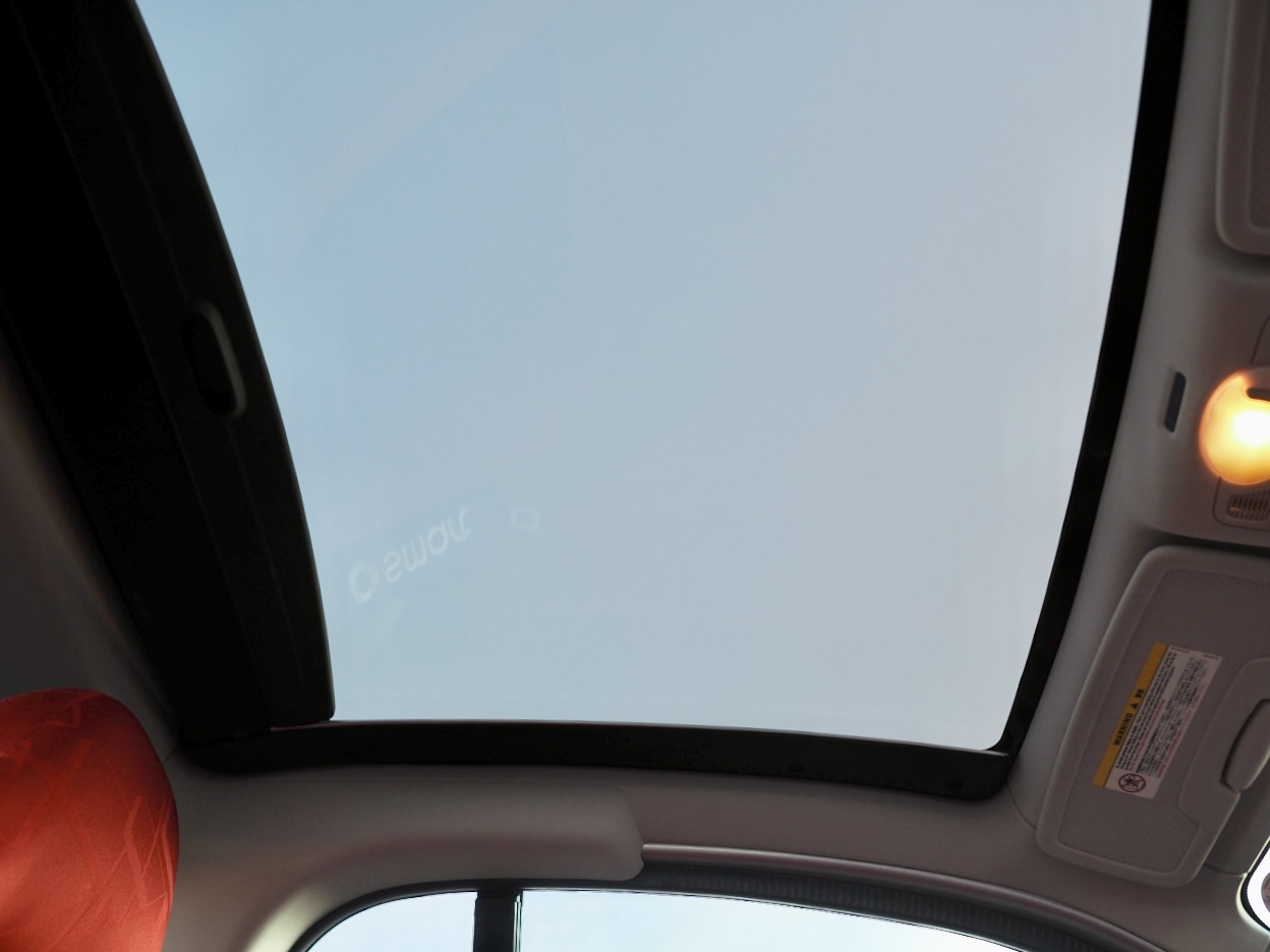 軽く開く大きなドアを開けると、ややオレンジ寄りのこのデザインレッドが室内を彩る空間が現れますが、これも決して目敏い存在ではなくシックにさえ感じるカラートーンで、固定式ではあるものの大口径グラスルーフのシェードを手で開ければ、穏やかな太陽光を自然と取り入れて、さらに室内を明るく演出するのも見事な部分と感じます・・・。