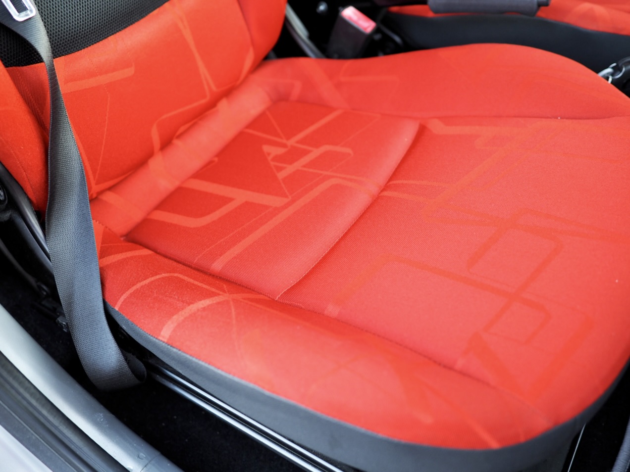 また低走行距離に比例するように、格子状のデザインが描かれたシートの表皮には大きな擦れやヨレは見られず、クッションの張りも十分なもの・・・。