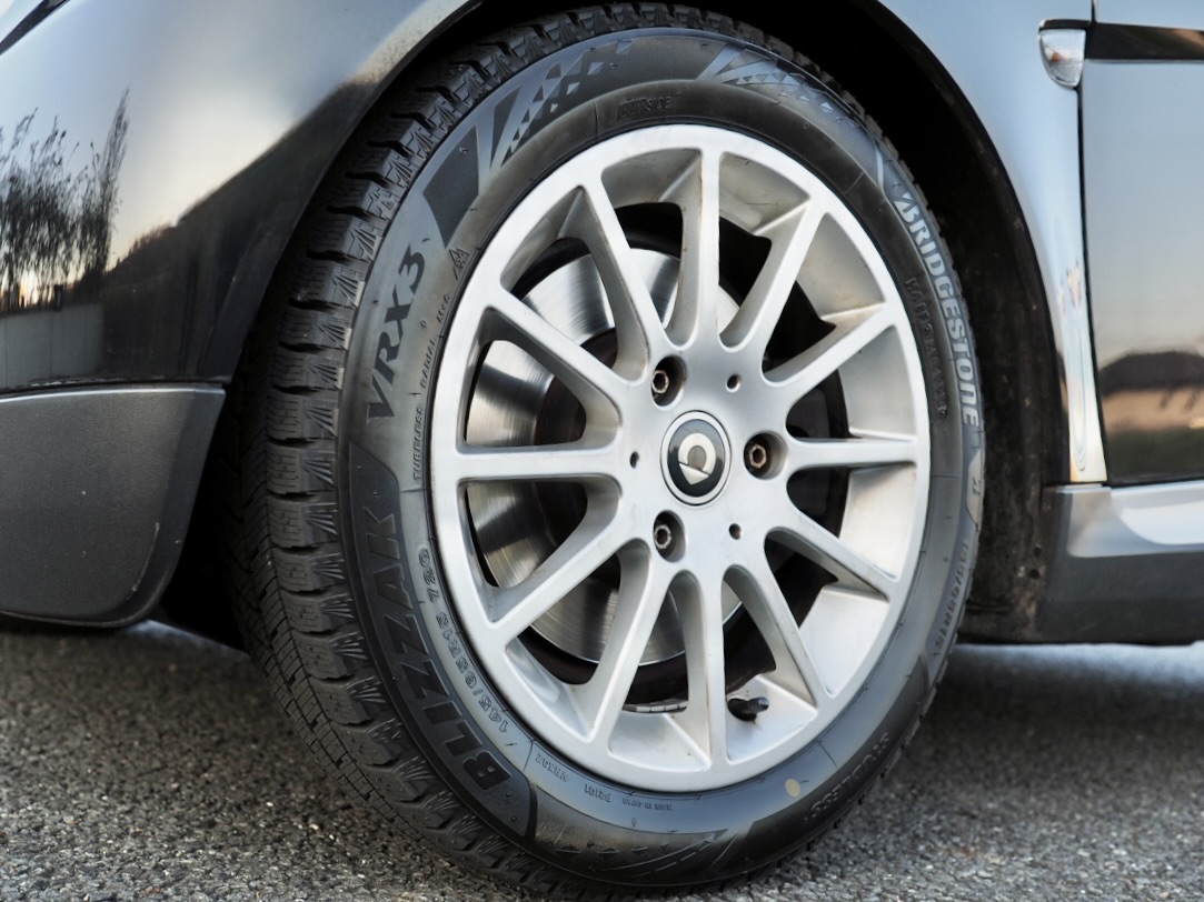 The original 451-series Smart Fortwo Passion alloy wheels show no noticeable curb rash and remain impressively clean, even deep between the spokes.