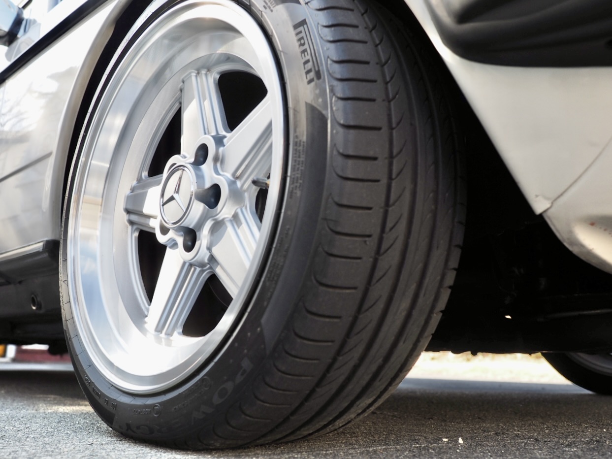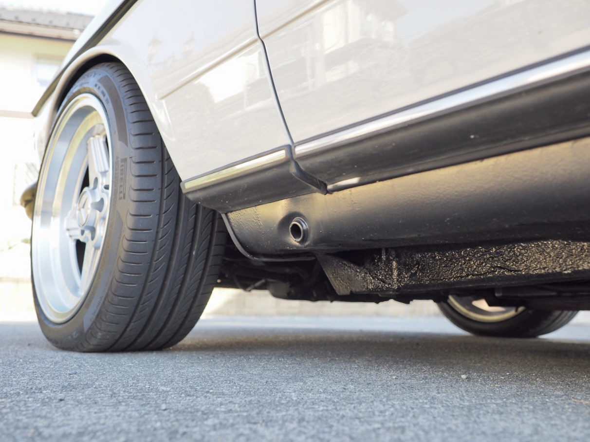 Custom adjustable-damping shock absorbers were fitted front and rear. Rather than simply lowering the ride height, sufficient suspension stroke was retained to absorb road irregularities, while at high speeds the body settles firmly and confidently. With repeated fine-tuning alongside a trusted mechanic and a strong focus on front-end alignment, the goal was a modern European ride feel—resulting in a wide and low stance with just a hint of rebellious character that looks irresistibly right.