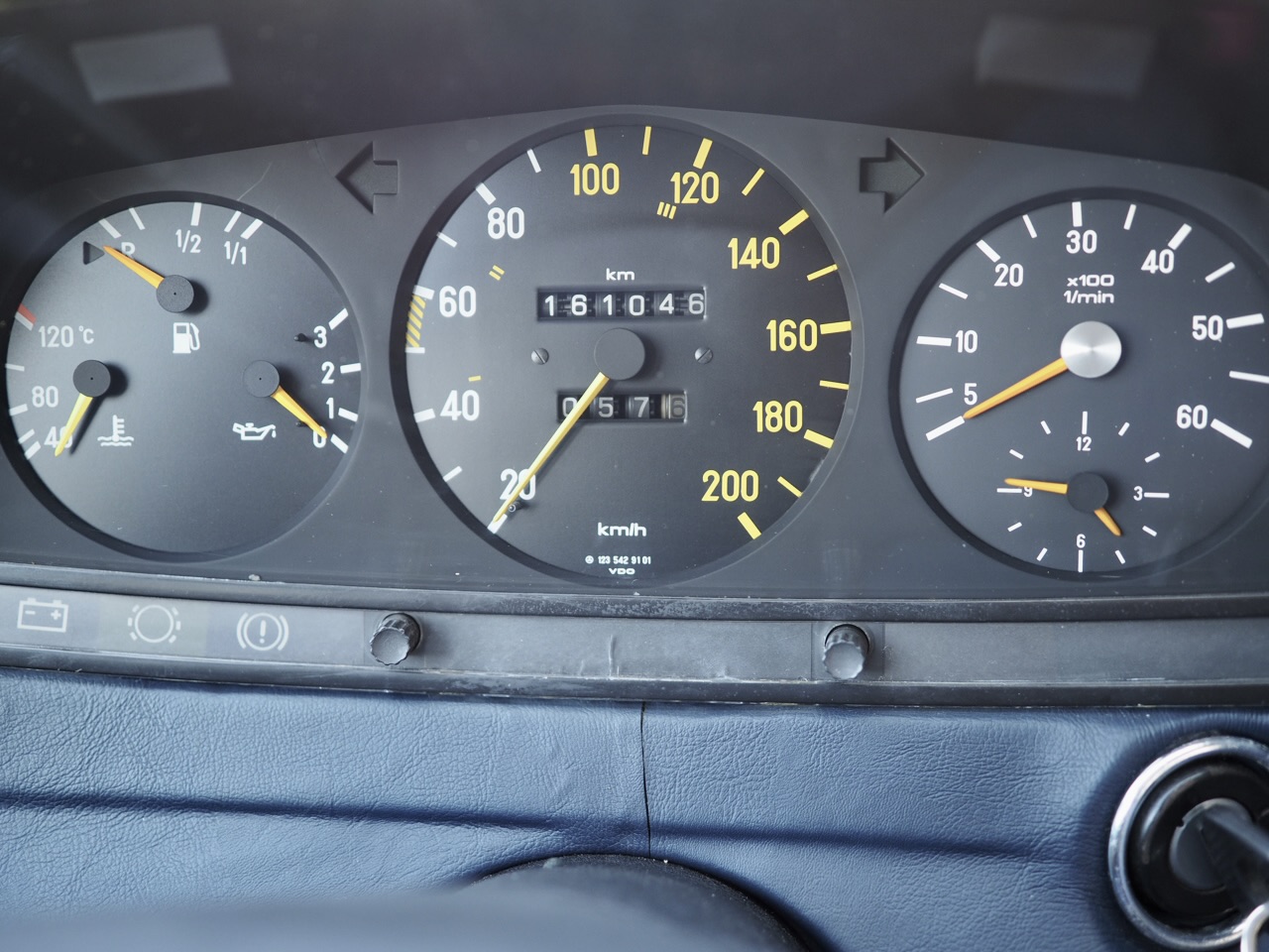 The instrument cluster remains original, but unlike most W123 300TDs that have a large clock on the right, this one features a tachometer—a pleasing detail for those in the know. Even the odometer reading of 161,046 km feels like merely the opening chapter of this car’s story.