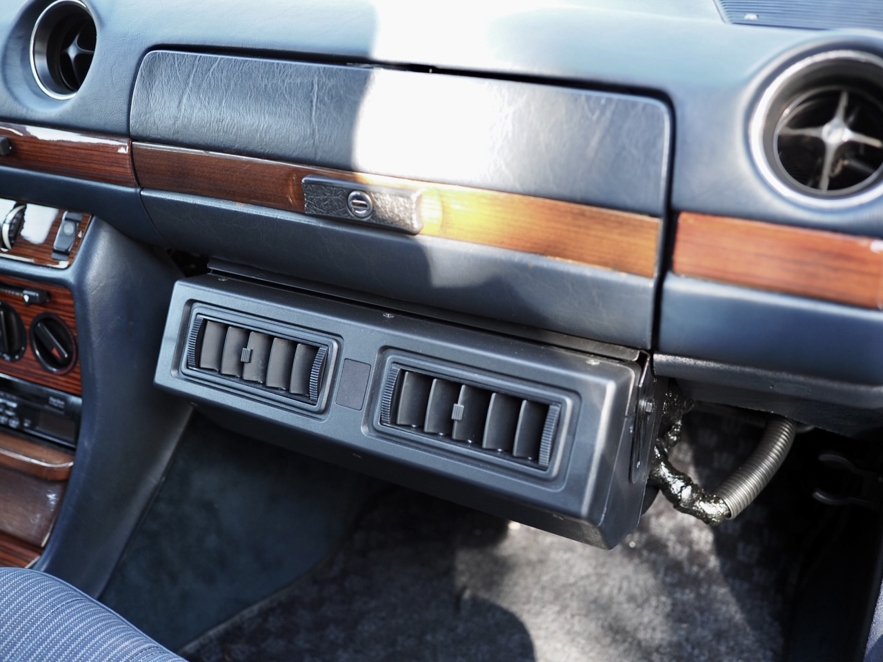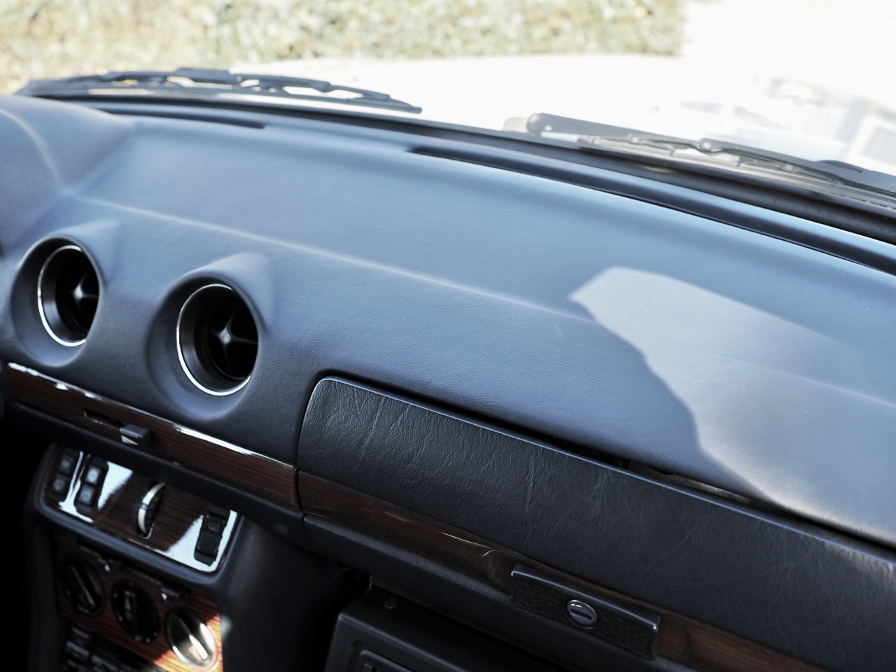 Inside, the once-cracked dashboard has been replaced with a brand-new NOS piece—described at purchase as “the last one”—found in Europe. The wood trim was upgraded to elegant zebrawood, sourced anew from around the world, restoring a fresh sense of classic Mercedes calm and dignity.