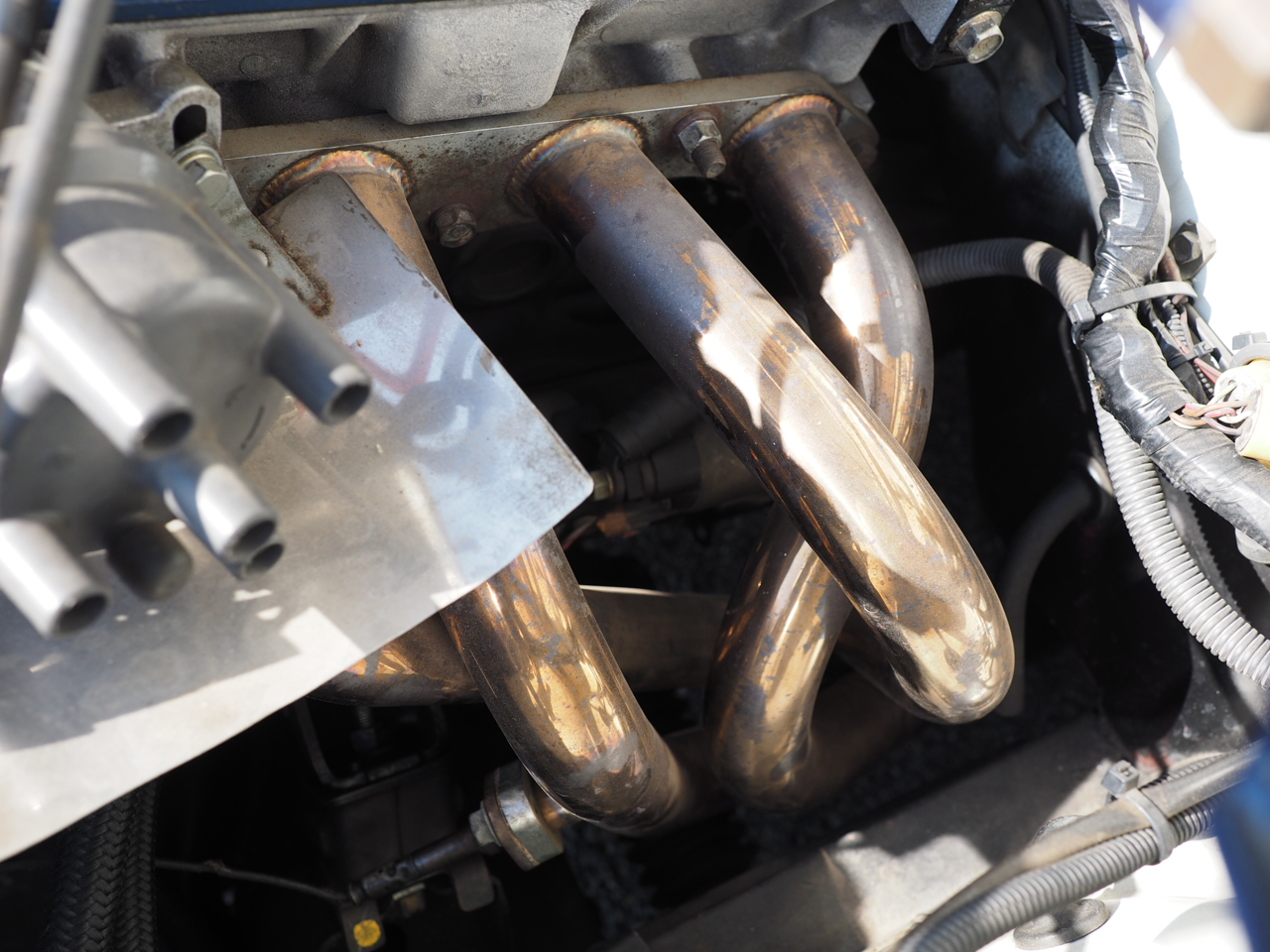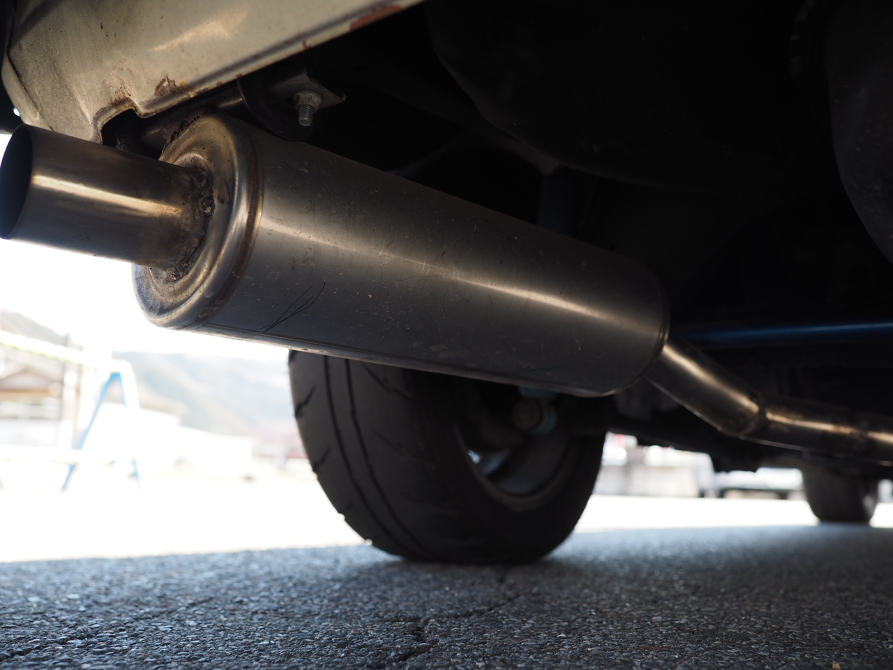 排気は有機的な姿で観る者を魅了する、実測等長エキマニから、これもメカニック自作というワンオフ・マフラーへと効率よく抜け、サードスポーツ製触媒を介しながらも、インナー・サイレンサー無しで車検適合という潔さを誇るもの・・・。