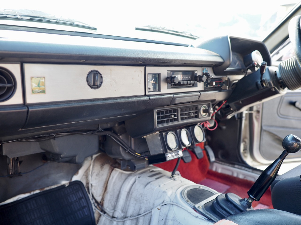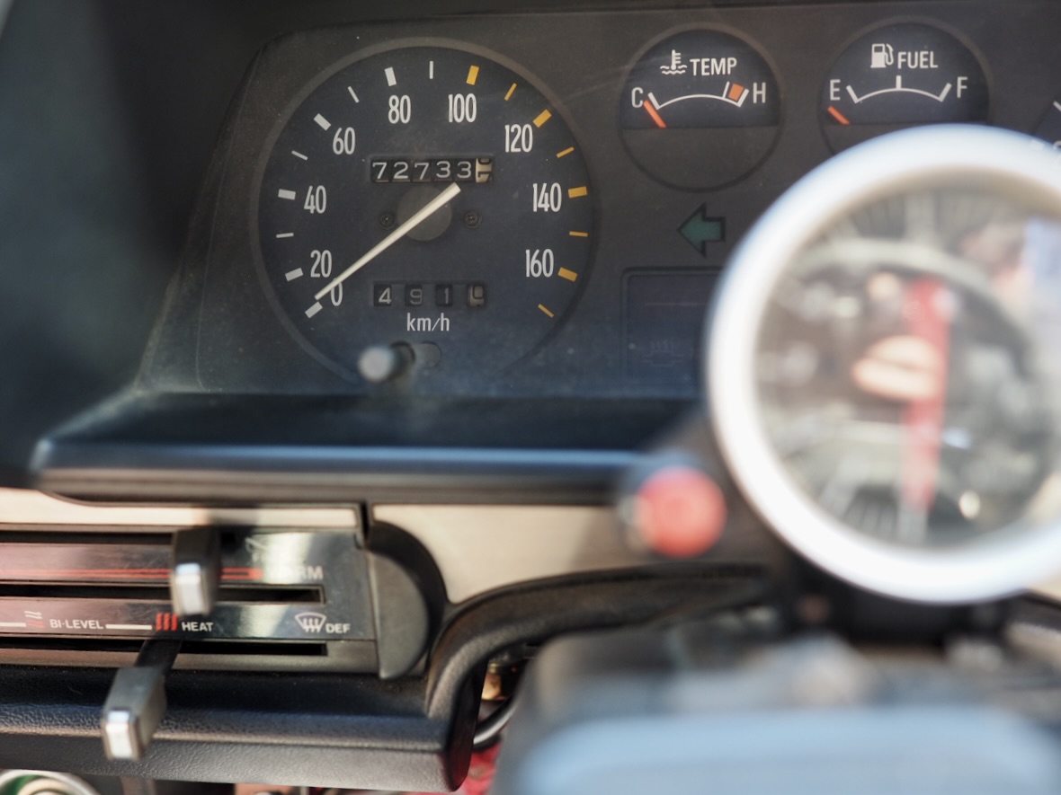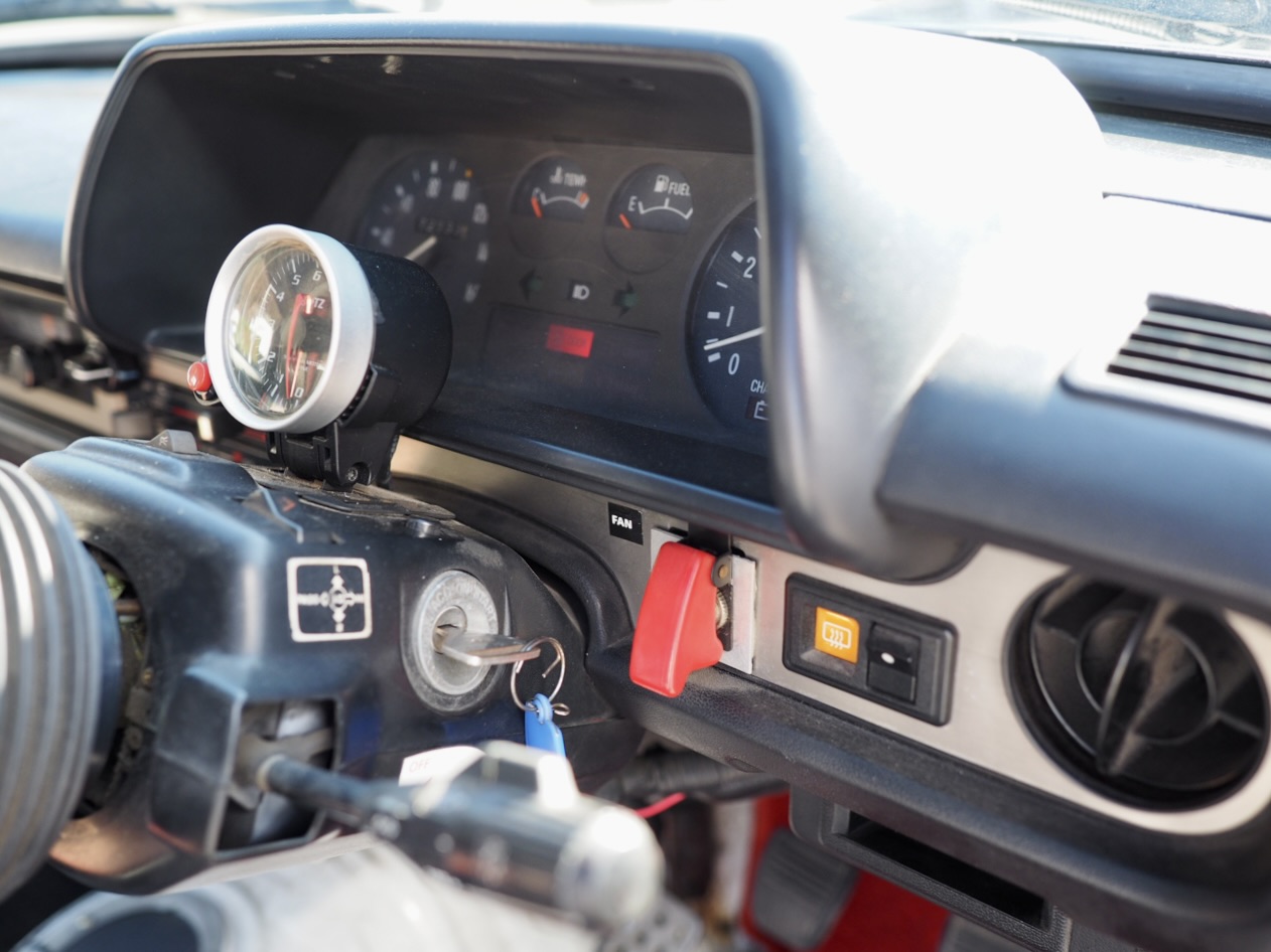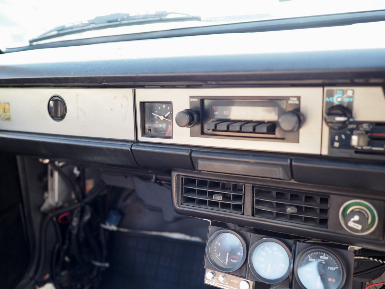 室内には機械式3連メーターとブリッツ製タコメーターが整然と並び気分を盛り立て、MOMOレーサーステアリングを握れば、その向こうに広がるのは昭和FRの原風景そのもの・・・。