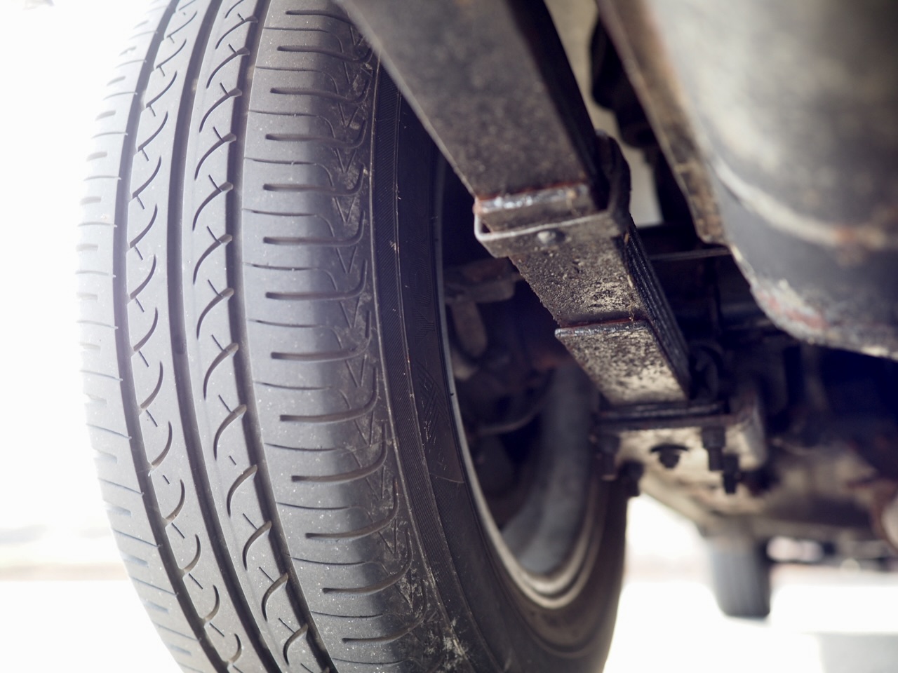 重いウレタンバンパーを外すだけで車高はかなり上がってしまい、そのままだとMGBの流麗なスタイルと雰囲気を出すことは不可能・・・。メッキコンバージョンの際にフロントはアーム式ダンパーの中に内包されるコイル・スプリングを適切なサイズに交換、リアのリジットアクスル+リーフスプリング式サスペンションに至っては、スペーサーを特注しバランスを出す必要がある・・・。